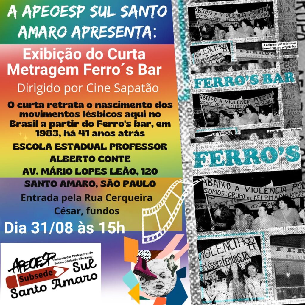 Aconteceu, no dia 31/08, um debate promovido pela Secretaria de Educação Inclusiva e Diversidade sobre o documentário Ferro' a Bar, dirigido pelo Cine Sapatão, onde a luta pela diversidade e sua história estiveram em pauta.