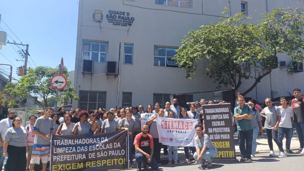 Funcionárias da limpeza de escolas municipais realizaram na segunda-feira, manifestação em frente a DRE Campo Limpo exigindo o pagamento.