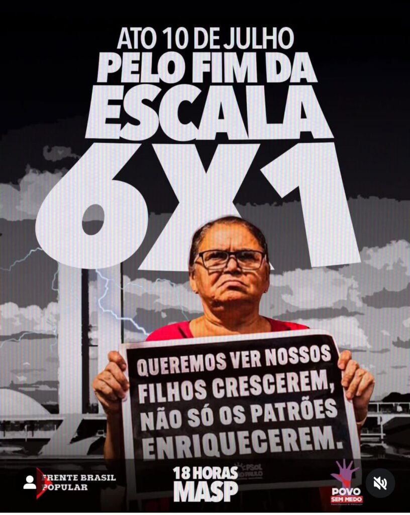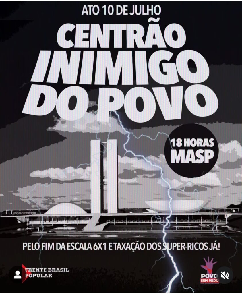 Participe dia 10/06/25 , às 18 h no MASP.Pelo Fim da escala 6×1 já! Por justiça tributária já ! Contra o Congresso inimigo do povo! 8 jul 2025, 11:10 Tempo de leitura: 0 minutos, 0 segundos image/svg+xml image/svg+xml image/svg+xml