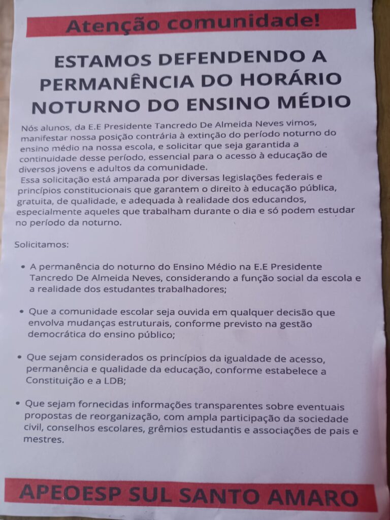 APEOESP SUBSEDE SUL SANTO AMARO na Luta contra o Fechamento de salas do noturno