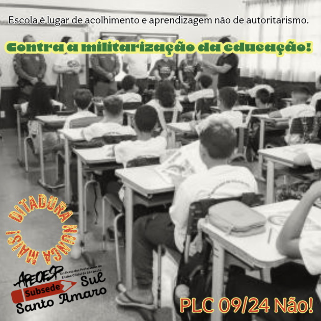 Nestas semanas em que relembramos o vergonhoso golpe de 1964, vamos fortalecer a nossa oposição ao PLC 09/24, que propõe a implantação das escolas cívico-militares. O governo bolsonarista, com sua postura anti-educação liderada por Tarcísio, busca minar o sistema de ensino público ao planejar a criação de 50 dessas escolas em 2025, seguidas por mais 50 no ano subsequente. Aqui estão alguns pontos a considerar: